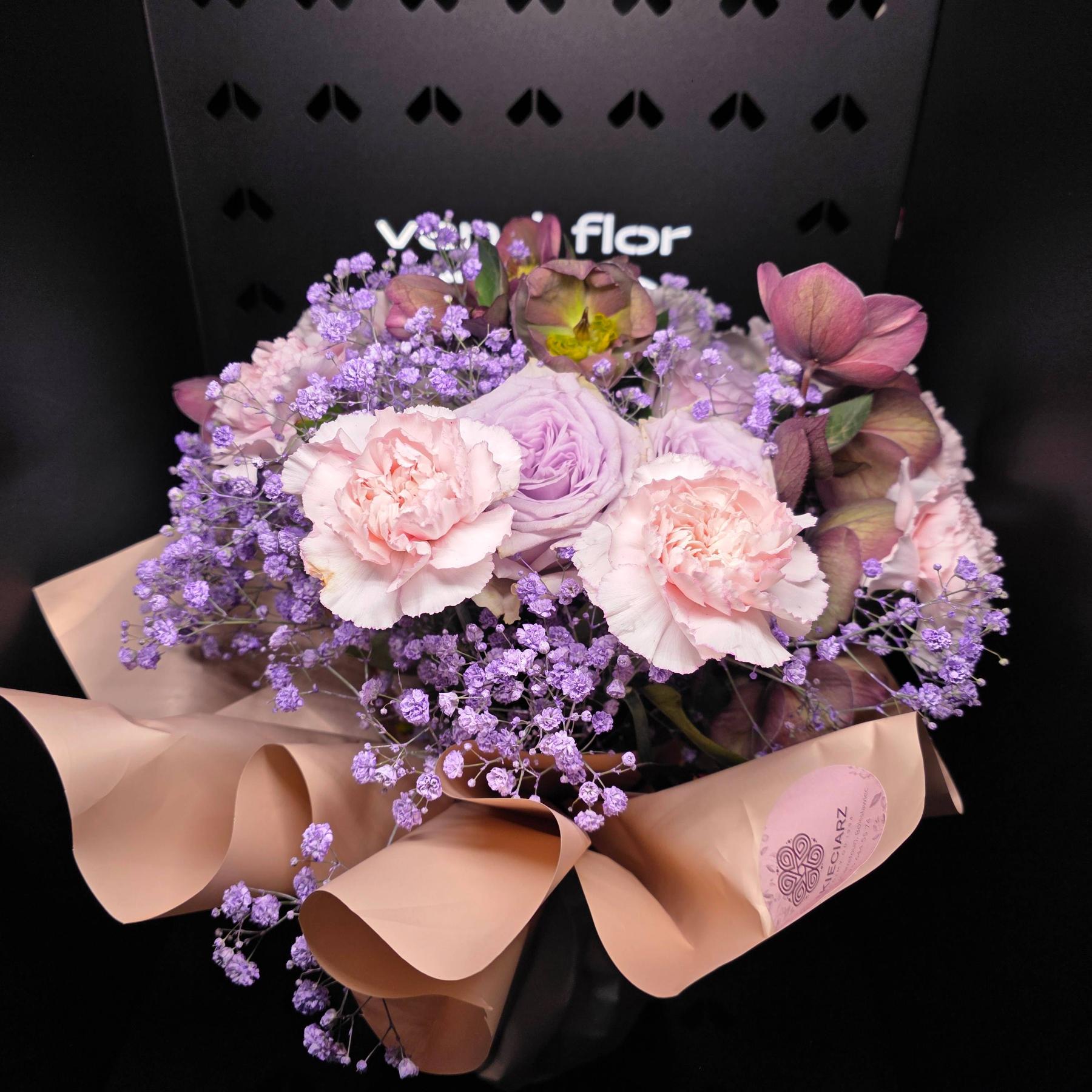 Stonowana kompozycja w odcieniach lawendy, pudrowego różu i beżu. Miękkie przejścia kolorystyczne oraz drobne dodatki tworzą efekt lekkości i spokoju.