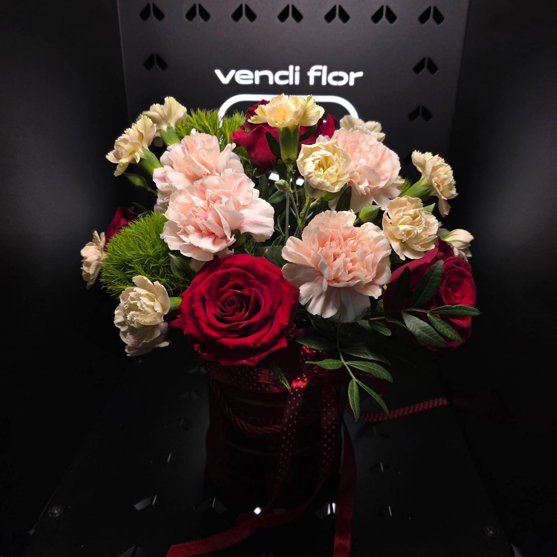 Świeży, lekki bukiet w odcieniach żółci i bieli, który przyciąga uwagę swoją naturalnością i subtelną elegancją. Róże i goździki przełamane delikatną zielenią tworzą harmonijną, spokojną kompozycję o bardzo przyjemnym, jasnym charakterze.